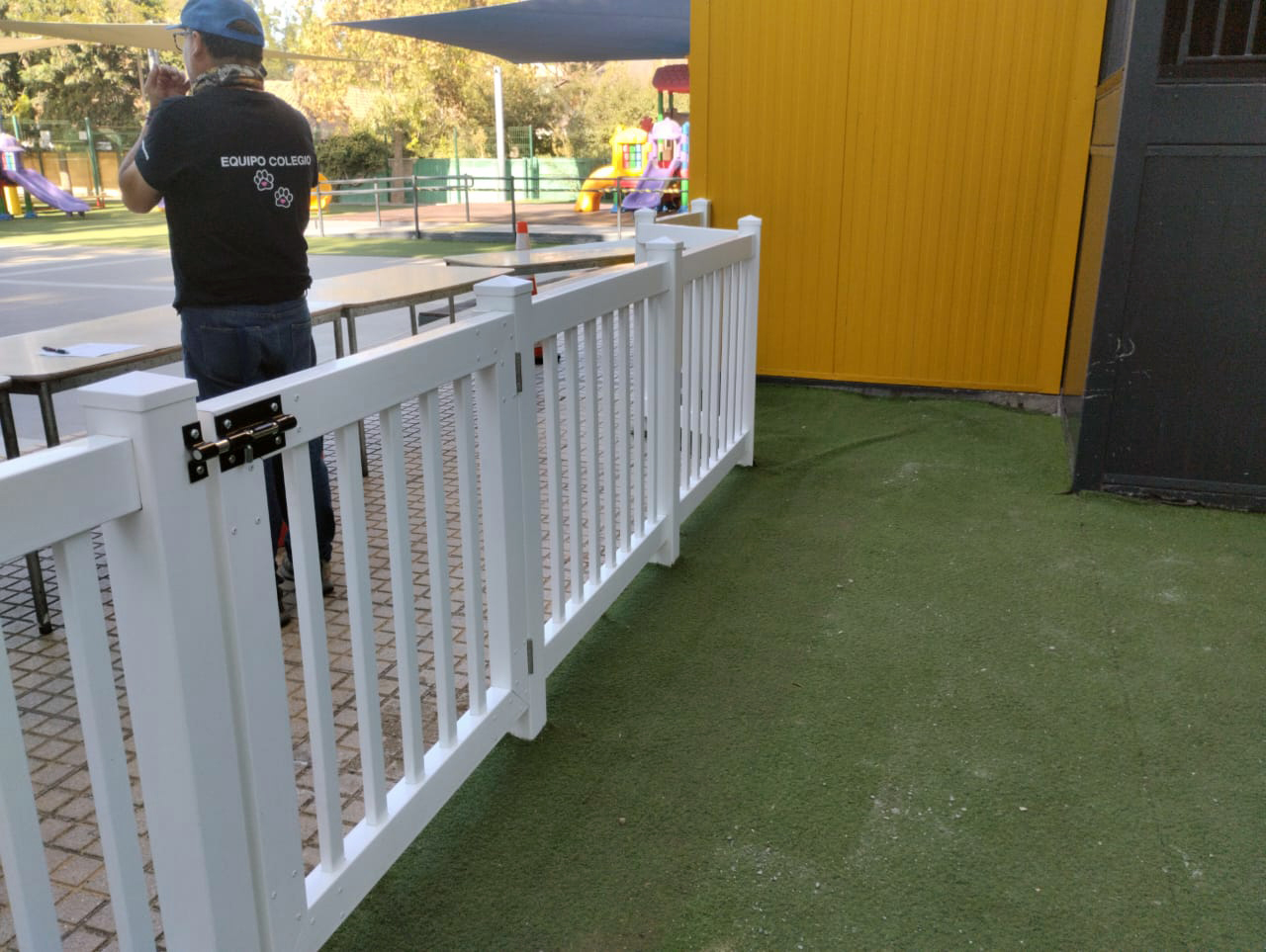 Este pequeño cerco de PVC nos fue encargado para realizar una separación entre distintas áreas de juego en el patio del colegio Pedro de Valdivia sede Las Condes.