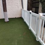 Nuestro cliente quería un diseño simple, no tóxico y duradero con nuestros perfiles de PVC color blanco, treillage y Pasto sintético para crear una zona de juegos para sus niños